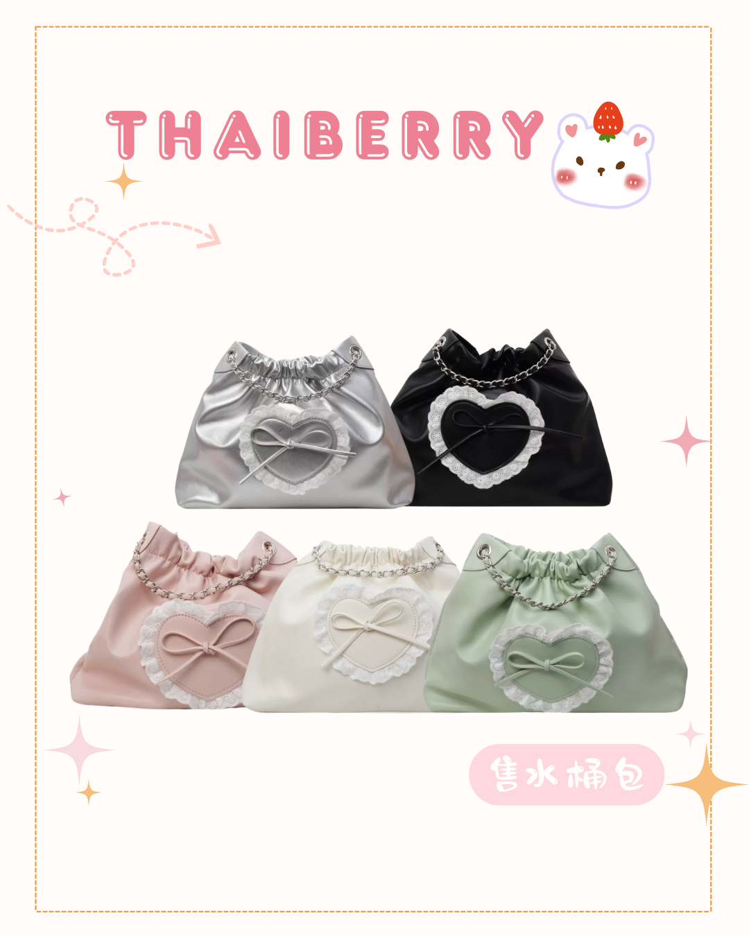 𝗖𝗼𝗹𝗼𝗿/ 銀色、黑色、寶寶粉、奶油白、蘋果綠