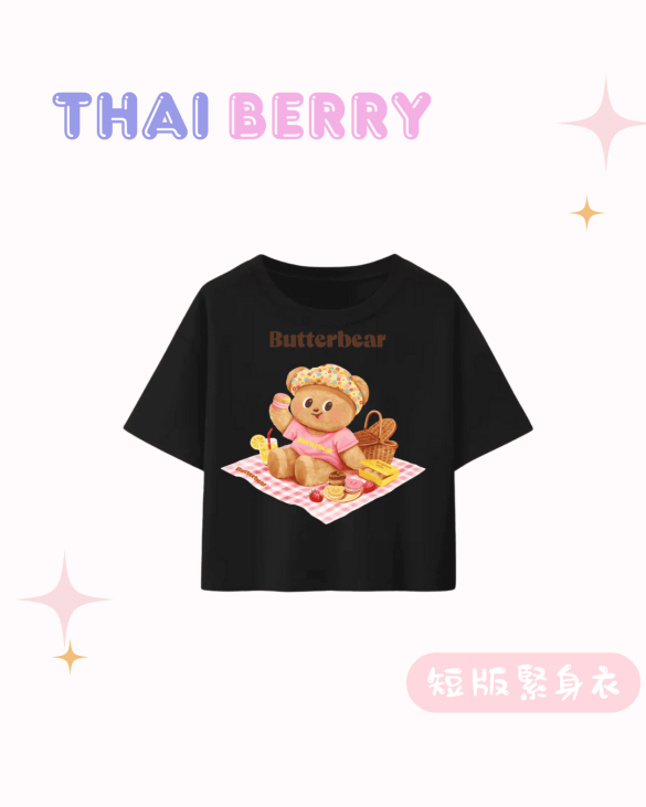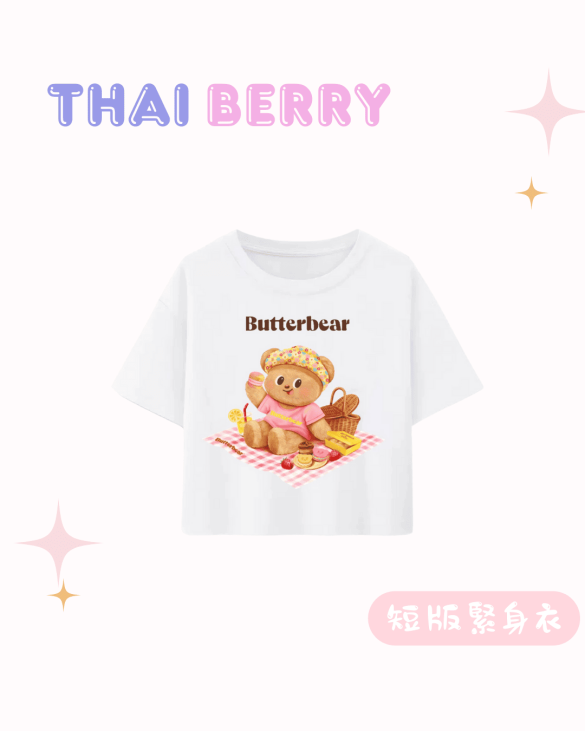 (預購) butter bear 貼身 短版 野餐印花T